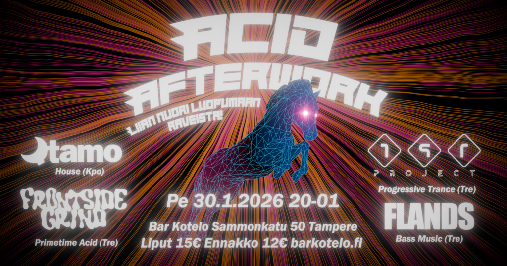 TST Project playing live set at Acid Afterwork party on January 30th @ Bar Kotelo Tampere together with Qtamo, Frontside Grind and Flands!
